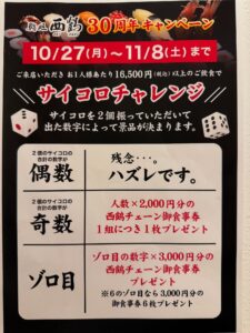 「チンチロリン サイコロチャレンジ」もついに本日がラストです!