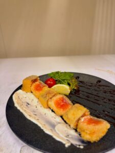 外はサクッと中はレアに仕上げた一品です。